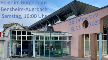 Alle Engagierten und Interessierten sind eingeladen zur 35-Jahrfeier des DFV am 8. November 2026 in Bensheim (Landkreis Bergstraße) Der erweiterte DFV-Vorstand zusammen mit der DFV-Jugend …