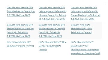 Erstmalig schreibt der DFV die neue Position des*der Sportdirektor*in (m/w/d) zum 1.3.2026 aus. Die Stelle wird ermöglicht durch die vom Bundeskanzleramt nun in Aussicht gestellte …
