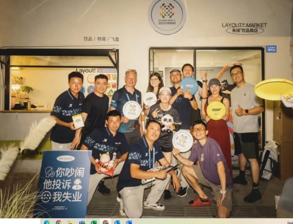 Am Mittwochabend hatte sich das Exekutivkomitee (ExCo) der International World Games Association (IWGA) mit dem Lokalen Organisationskomitee (LOC) zu letzten Feinabstimmungen getroffen. IWGA-Geschäftsführer Joachim Gossow stellte fest, dass die Vorbereitungen in allen Bereichen nahezu abgeschlossen sind, und die Veranstaltung starten kann. Auch WFDF-Präsident Robert „Nob“ Rauch ist bereits in Chengdu eingetroffen (im Bild mit chinesischen Frisbeespieler*innen).