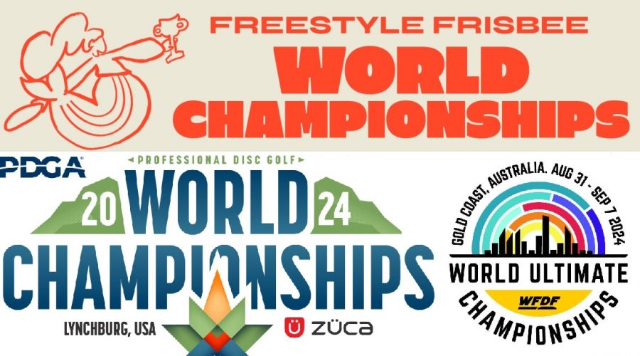 Freestyle Frisbee-WM vom 14. bis 17. August 2024 im polnischen Warschau – Discgolf Pro WM vom 21. bis 25. August 2024 in Lynchburg (Virgina, USA) – Ultimate-WM vom 31. August bis 7. September 2024 im australischen Gold Coast
