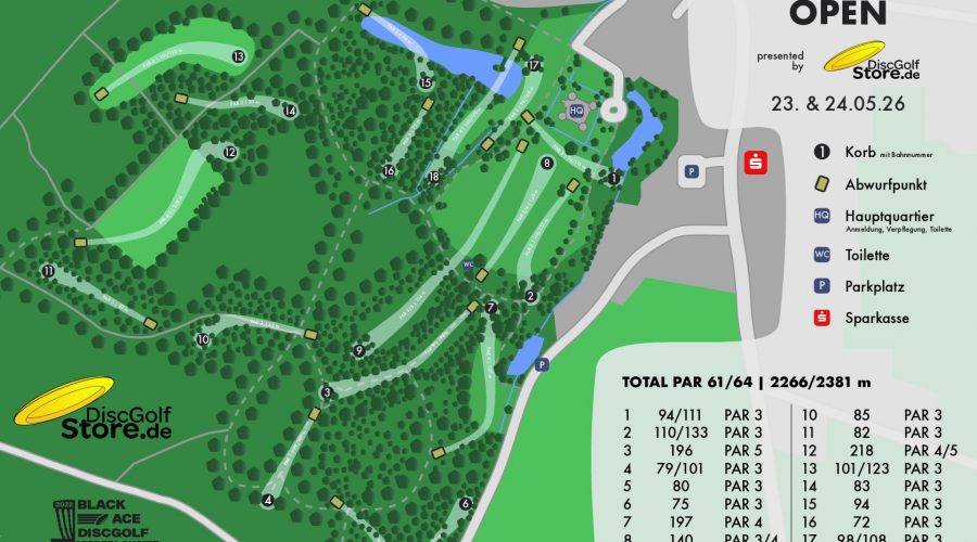 An zwei Turniertagen an Pfingsten – am 23. und 24. Mai 2026 – kann in Sallgast in Brandenburg das kurze und das lange Layout des Parcours der diesjährigen Discgolf-DM ausprobiert werden (siehe den detaillierten Plan auch hier). Der ausrichtende Verein Blackace Discgolf Niederlausitz richtet dazu das Zweitagesevent BlackAce Open durch, mit zwei voneinander unabhängigen Eintagesturnieren. Die 41. Deutschen Discgolf Meisterschaften finden vom 17. bis 20. September 2026 an selber Stelle rund um Schloss Sallgast statt. Die Anmeldung zu den BlackAce Open findet über https://turniere.discgolf.de statt.